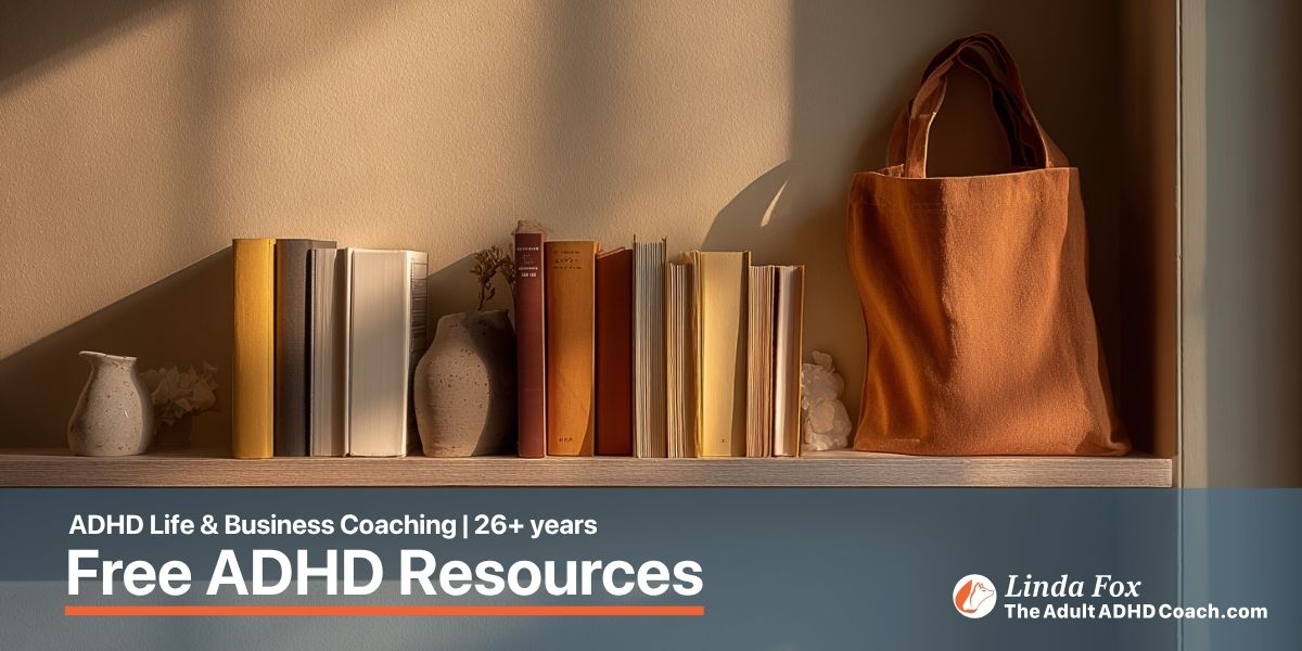 Everything here has been chosen to help you understand how your brain works, whether you have ADHD, AuDHD, or another neurodivergent condition, and build strategies that actually fit the way you are wired. Drawn from 26+ years of coaching adults with ADHD.